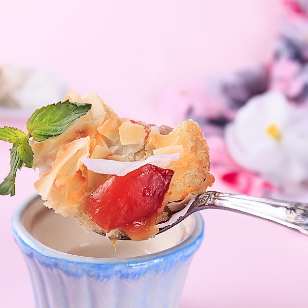 DetailsПрасковен сладкиш с кокосова коричка Лятна неделна утрин… Топла, слънчева и ароматна… С аромат на печени праскови, кокос и ванилия. Вкусно и много сладко начало на деня. Няма по-добра идея за нещо сладко в сезона на тези прекрасни плодове. Рецептата е превъзходна и е по идея на ненадминатия шеф-готвач Ивелина Иванова. Ако някой се интерсува…